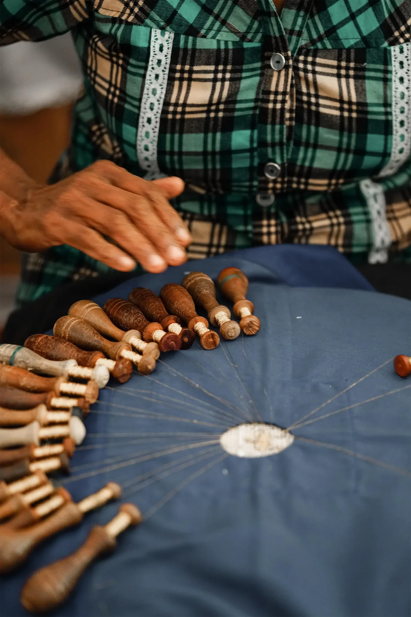 The main lady Mrs Susila is a pro lace weaver and an instructor of handmade lace weaving. She weaves and source lace from the area and handpicked it for KÛR designs.